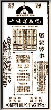 1914年,上海公共租界工部局建立华人隔离医院,设有牙科专诊,后改为民团医院。
