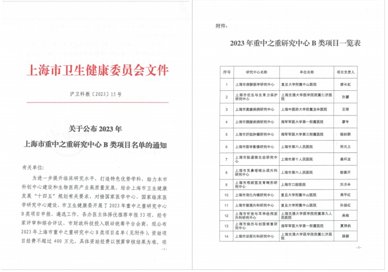 2023年8月,获批2023年上海市重中之重研究中心